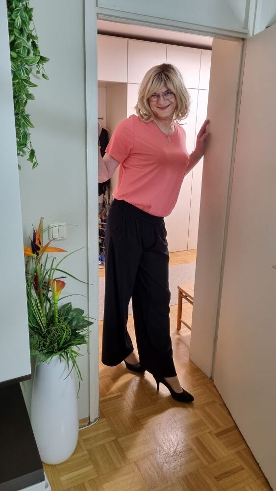 Bevor es losging, habe ich noch ein paar Bilder mit einem meiner bereits vorhandenen Outfits zuhause gemacht – einfach, um den Moment festzuhalten und auch später noch einmal nachfühlen zu können, wie ich mich an diesem Tag gefühlt habe. Es war diese Mischung aus Vorfreude und Ruhe, die sich oft einstellt, wenn man weiß: Gleich geht es raus, gleich beginnt ein neuer kleiner Ausflug. Diese kurzen Momente vor dem Spiegel, ein paar Schritte durch den Raum, ein Blick ins eigene Lächeln – sie sind für mich fast schon ein Ritual.